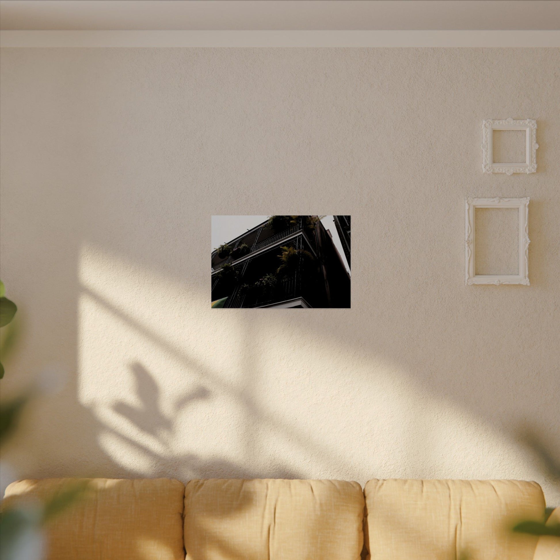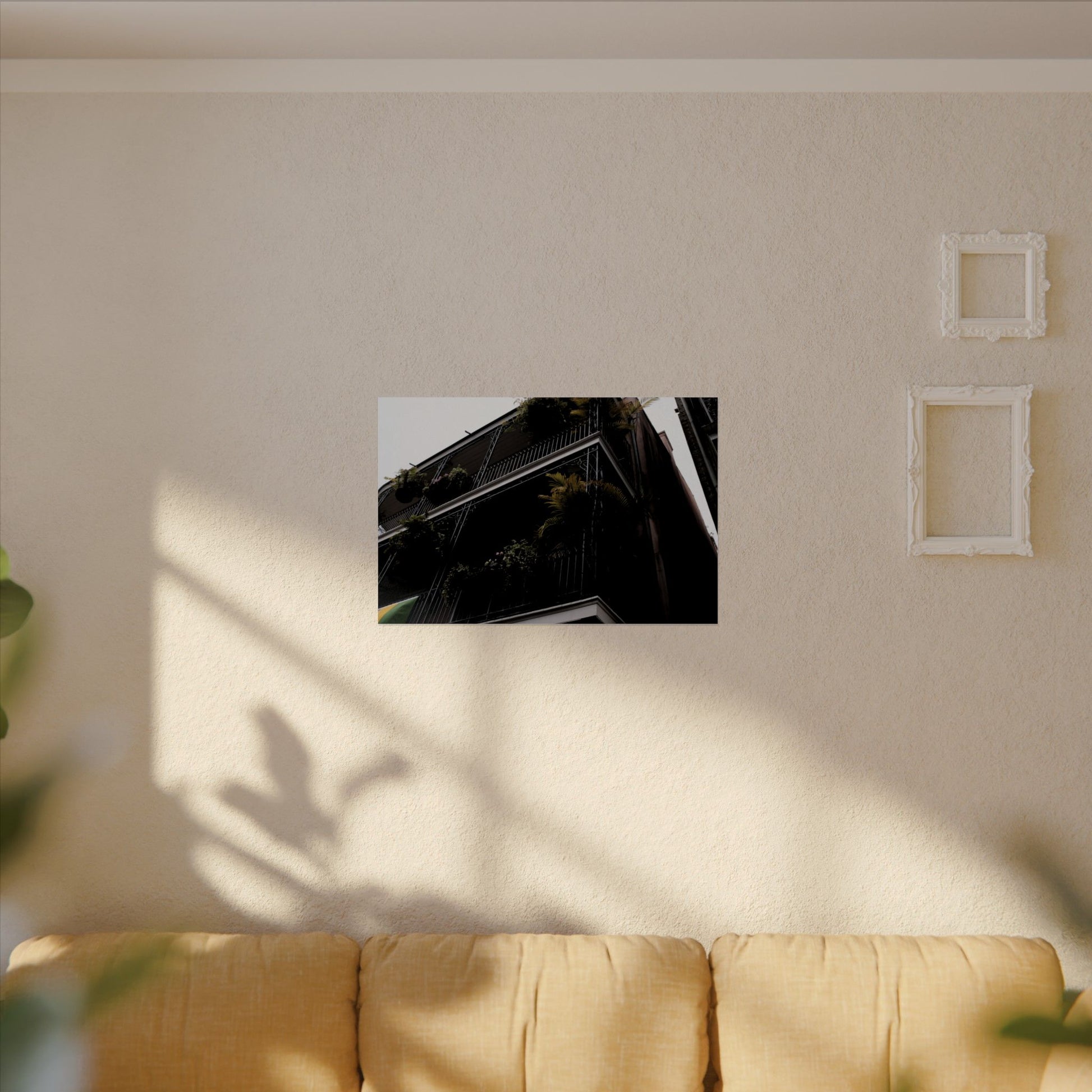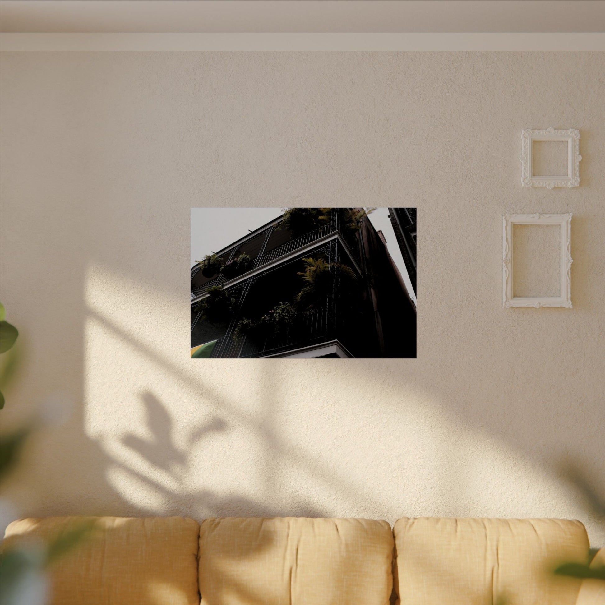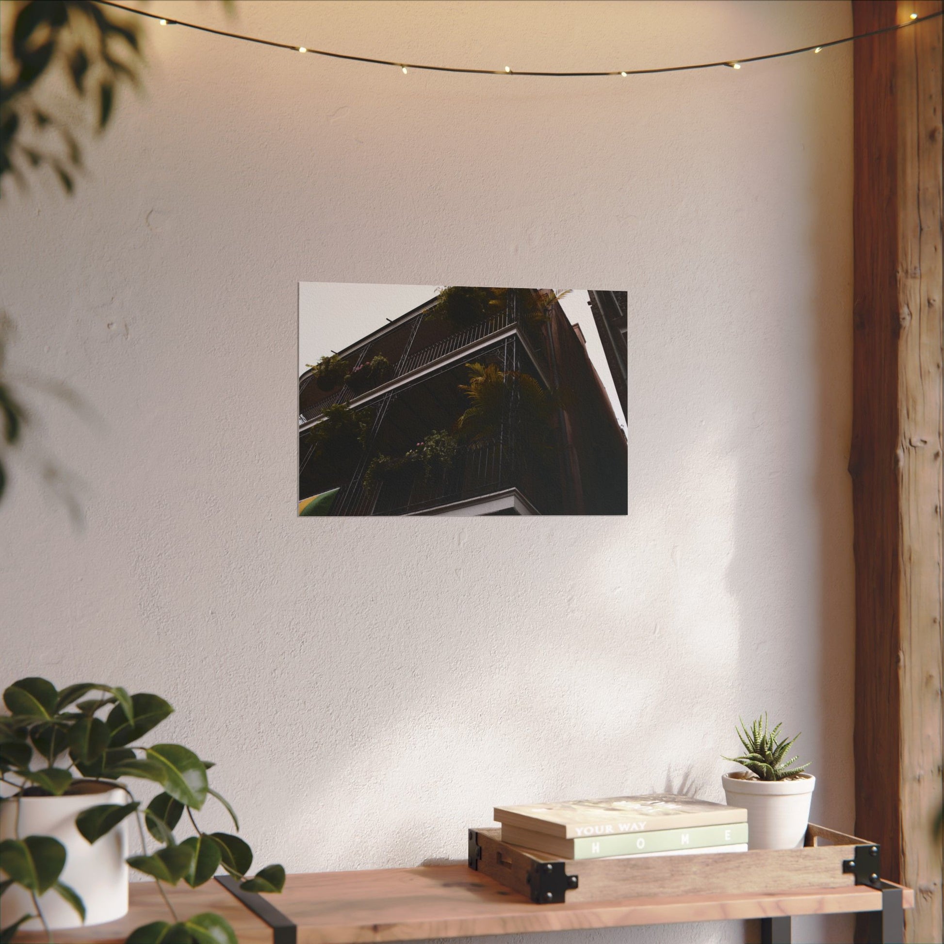 Balconies in the French Quarter of New Orleans, LA adorned with tropical plats. Archival poster in 6 sizes. 2020.